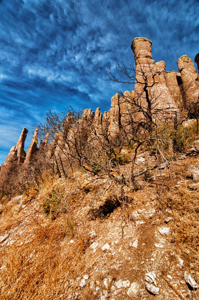 Le 25, nous avons quitté Tucson pour nous diriger vers le Nouveau-Mexique, étant donné que nous devions être à Albuquerque le 27 pour une conférence sur le unschooling à laquelle nous voulions vraiment assister. Nous avons rapidement traversé Tombstone, une ville du Far West qui ressemble pratiquement à un grand décor de théâtre, mais tout était terriblement tranquille en ce jour de Noël. Nous nous sommes rendus jusqu'au Chiricahua National Monument et nous sommes arrivés dans le noir. Comme nous n'arrivions pas à trouver un emplacement de camping assez grand pour notre roulotte (le camping était pratiquement vide, seuls deux terrains étaient occupés), nous nous sommes stationnés dans un stationnement pour les remorques à chevaux ou il n'y avait pas de signe No camping.