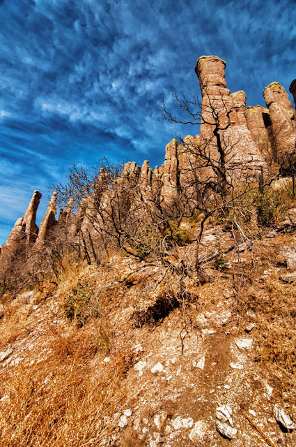 On the 25th, we left Tucson and headed towards New Mexico, since we had to be in Albuquerque for the 27th for an unschooling conference we really wanted to attend. We zoomed through Tombstone, a Far West city that is almost like a big theater set, but it was awefully quiet on that Christmas day. We drove all the way to Chiricahua National Monument and arrived after dark. Since we could not find any camping spot that was big enough for our rig (the camping was empty, only two spots were taken), we parked at a horse trailer parking lot where there wasn't any No camping sign.